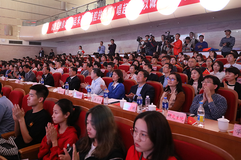 学校把庆祝新中国成立70周年“我和我的祖国”主题教育活动启动仪式作为一次重要的爱国主义教育契机,以宣讲、对话、光影、音乐等多种形式,将第一课堂教学同第二课堂社会实践、学生社团活动等相结合,将启动仪式办成一场师生共同参与、情景交融、主题鲜明的大型思想政治理论课,为学生思想解疑释惑,引导学生坚定信念,立鸿鹄志,做奋斗者。