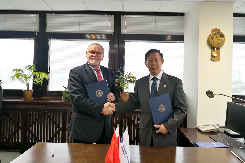 在波兰托伦哥白尼大学,孙宝国校长先后与安德烈杰克·特雷恩(Andrzej Tretyn)校长和负责国际合作事务副校长沃伊切奇·威索塔(Wojciech Wysota)进行会谈并与安德烈杰克·特雷恩校长签署两校校际合作谅解备忘录。孙宝国校长介绍了我校的基本情况和未来学校建成研究型大学的发展目标,双方对两校未来在相关专业领域开展学生及教师交流、科研合作以及共同申请欧盟项目进行了探讨,并达成合作共识。访问期间,孙宝国校长一行还与波兰托伦哥白尼大学化学与工程学院、经济与管理学院及相关部门负责人进行会谈,孙宝国校长详细了解了该校的优势学科、办学特色、生源构成等,双方对两校未来在化工和经济商科领域共同申请合作项目进行了深入交流。