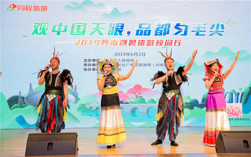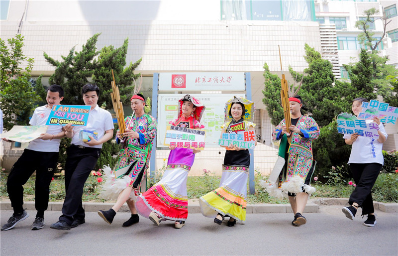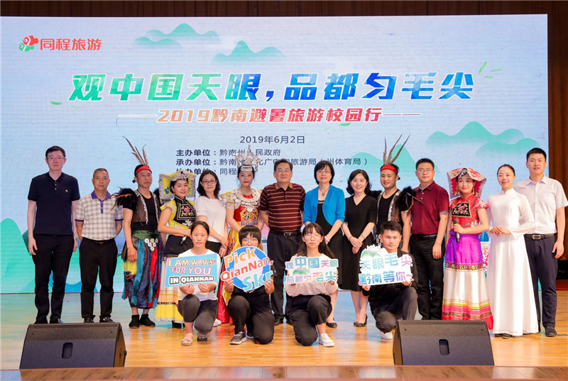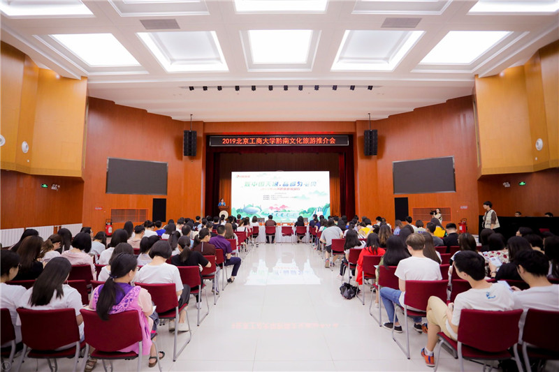 为响应党中央“精准扶贫”的号召,助力黔南州发挥旅游特色振兴乡村,借黔南州到北京世园会开展主题日活动的契机,6月2日下午,“观中国天眼 品都匀毛尖”2019黔南文化旅游宣传活动在我校航天桥校区东区礼堂举行。我校党委副书记张德玉,黔南州委常委、州人民政府副州长文海涛,黔南州驻京办主任王芳,黔南州文化广电和旅游局(体育局)党组成员向兆国以及我校团委书记王海伟出席推介会,北京及黔南州10多家媒体记者、我校师生共300余人参加了推介活动。