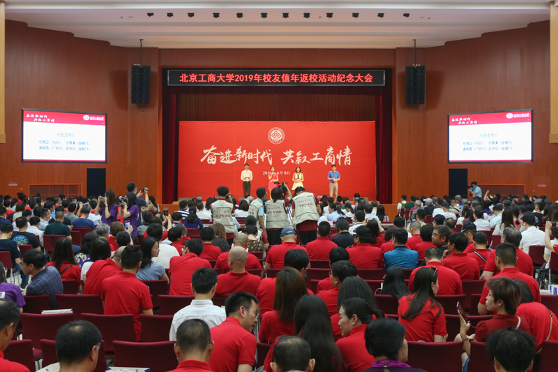 上午10点半,学校2019年值年校友返校活动纪念大会在阜成路校区东区礼堂举行。学校党委书记黄先开,党委副书记张德玉、董竹娟,副校长谢志华、张耘、方德英出席大会,与值年校友代表们共叙师生情谊。校友杜雅正(化工85)、张霄濛(金融05)、龚晓雪(广告05)、彭传旭(金融18)主持纪念大会。