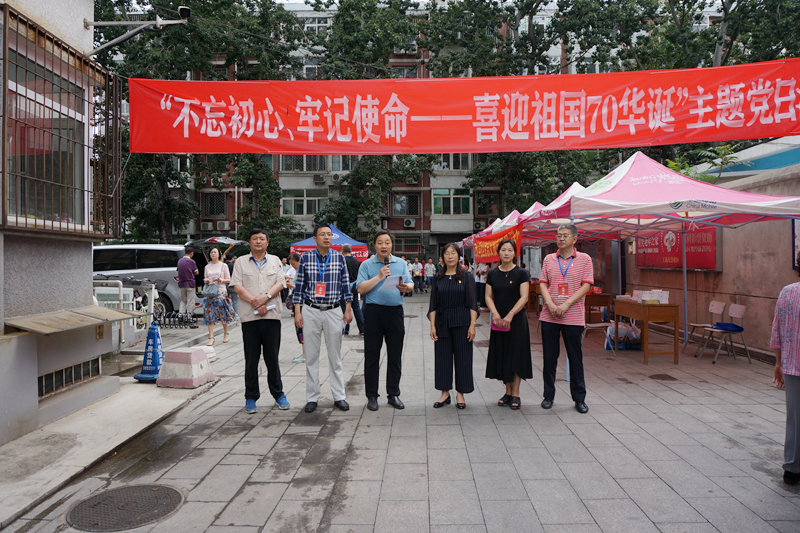 为纪念中国共产党成立98周年,学习习近平新时代中国特色社会主义思想和党的十九大精神,充分发挥党支部战斗堡垒作用和党员先锋模范作用,6月28日,公共事务处党总支联合学校社区居委会、304医院急诊科、甘家口社区医院、市热力集团、甘家口食品药品监督所等多家单位,在阜成路校区开展了以“不忘初心,牢记使命”为主题的党日活动。公共事务处党总支党员、科室骨干和相关单位100余人参与活动,方德英副校长参加了此次活动。