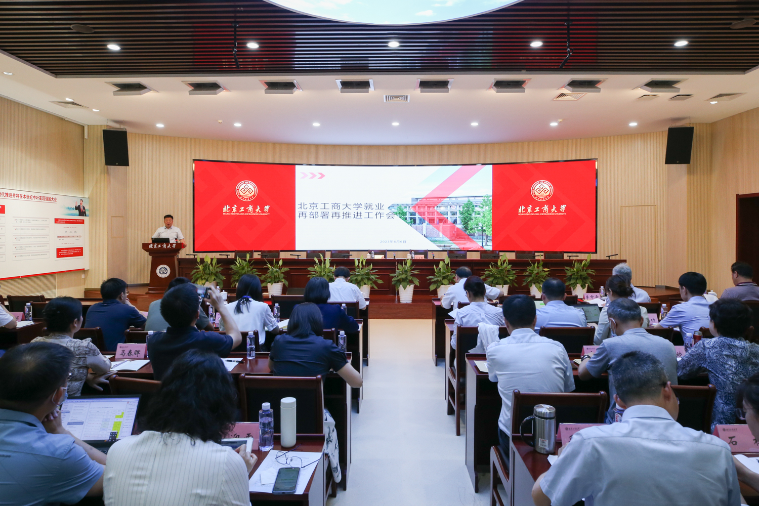 黄先开作总结讲话。他强调,就业工作是民生工程,就业质量是学校办学水平、人才培养质量、学校声誉的重要体现。各部门、各学院要以本次会议为新起点,统一思想、提高认识、形成合力、攻坚克难。第一要提高站位,高度重视。要深入落实教育部、北京市部署要求,切切实实把毕业生就业工作作为重中之重,作为党政一把手工程来推进。各部门、各学院要出真招、办实事、见实效,把做好2023届毕业生就业工作作为学习贯彻习近平新时代中国特色社会主义思想主题教育走深走实的现实行动。第二要全力以赴,落实落细。加强就业岗位挖掘力度,精准分类开展就业指导,摸清底数建立台账,层层压实、责任到人,抓住重点、突破难点。第三,系统谋划,深化改革。高质量就业是高质量发展的内涵,要深化人才培养和管理体制机制改革,创新形式、协同推进,提升学生就业竞争力。第四,严守纪律,准确统计。严格遵守就业统计纪律,落实教育部提出的“四不准”“三不得”要求,做好毕业生就业工作。希望各部门、各学院齐心协力,做好就业再推进工作。