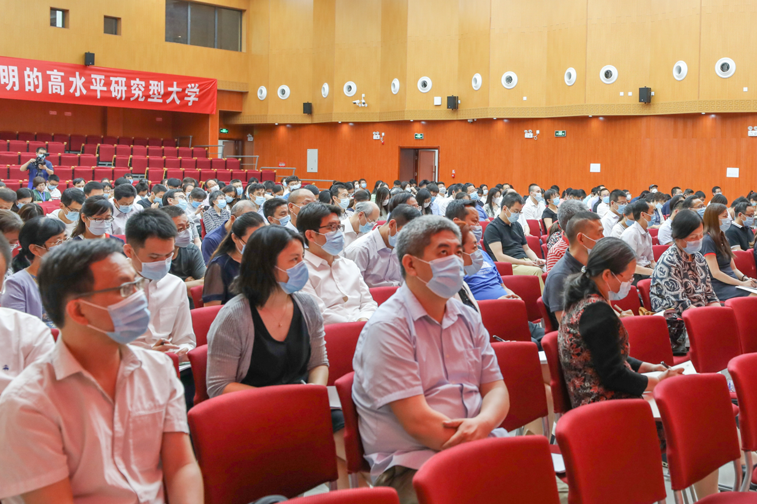 校长孙宝国院士以《统一思想,凝聚共识,明确目标,奋勇拼搏,为建设高水平研究型大学而努力奋斗》为题作动员部署。孙宝国校长阐述了此次会议的重要性和必要性,强调此次会议紧紧围绕人才培养的根本问题,既是学校教育教学思想大学习大讨论动员会,也是学校建设高水平研究型大学的启动会,至关重要,意义重大。孙宝国校长指出,在中共北京市委教育工作领导小组印发的《北京市属公办本科高校分类发展方案》中,学校进入北京市高水平研究型大学的建设行列,振奋人心,来之不易,全体师生要倍加珍惜、倍加努力,要增强危机意识,学懂弄通上述文件精神,对标“一工三首”,放眼“世界一流”,制定可量化、可考核目标体系,围绕人才培养、科学研究、社会服务、师资队伍建设四个方面,始终践行以学生为中心的发展思想,深入推进培养高素质创新型人才,全面实现学校人才培养“369”标志性指标,在两年建设期间扎实开展工作,力争取得建设新成效。孙宝国校长提出建设高水平研究型大学十大目标任务:一是要强化师资队伍建设,坚持以自主培养为主,培养和引进相结合,鼓励拼搏,培养和引进有家国情怀和责任担当的优秀人才、领军人才;二是要将博士点申报作为学校工作的重中之重,全校上下要统一思想、提高认识,举全校之力做好博士点申报工作;三是要争取国家级平台,以“志在必得”的信心,全力以赴突破国家重点实验室获批;四是要高度重视第五轮学科评估,做好顶层设计,形成从校领导到院长再到学科负责人的责任体系,明确分工,各学科、各单位主动发力;五是要积极推进“双万计划”建设,着力提高学校国家级一流本科专业点数量;六是要加快世界一流学科建设,特色学科争取进入世界一流学科前列,其他学科要调整方向、凝练特色,按照“互补、错位”原则,做到“人无我有”“人有我优”;七是要深入分析研究,精准发力,力促重点学科进入ESI前1%;八是要努力获批国家级项目,特别是国家自然科学和社会科学基金项目,以申报助推学校科研发展;九是要高度重视国家科学技术奖和国家教学成果奖等国家级奖励奖项的申报工作,科学规划,确保取得新突破;十是要把服务北京、服务首都放到战略高度来认识,科学研究要立足首都,要面向经济社会发展主战场、面向北京,科研成果转化要首选北京,为首都“四个中心”建设做出应有的贡献。孙宝国校长强调,高水平研究型大学建设为北工商未来发展指明了方向,为北工商“双一流”建设带来了机遇,全体教职工要统一思想,形成共识,齐心协力,奋勇拼搏,早日将我校建设成为特色鲜明的高水平研究型大学!