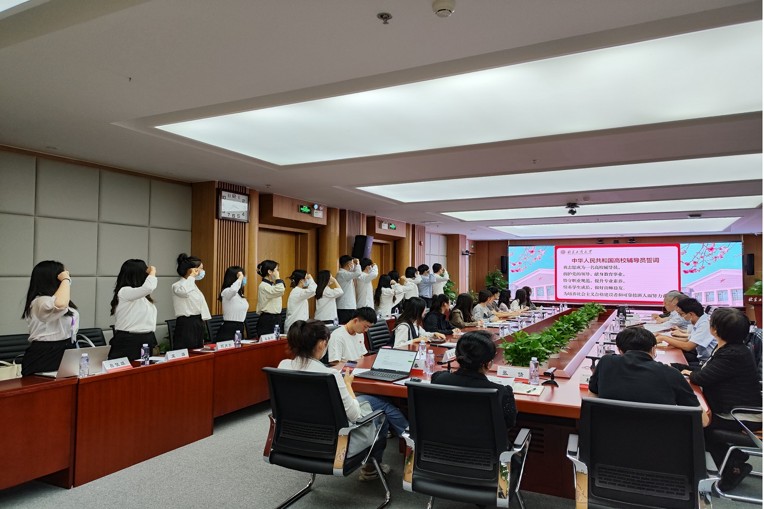 会议伊始,2022级工保辅导员郑重宣誓志愿成为一名高校辅导员。李中奇向2022级工保辅导员送上工具书并提出工作要求。李中奇指出,要充分认识辅导员“为党育人、为国育才”的神圣使命,要充分认识辅导员“做学生人生导师和知心朋友”的光荣职责,要充分认识提升辅导员职业能力和专业素养的重要意义。他要求辅导员要始终不忘以学生为中心的初心,深入落实立德树人根本任务,坚持贴近实际、贴近学生,遵循思政教育规律,创造性地开展工作,努力练就过硬本领,为每一名学生服好务,对每一名学生负好责,成为学生成长路上的大先生。