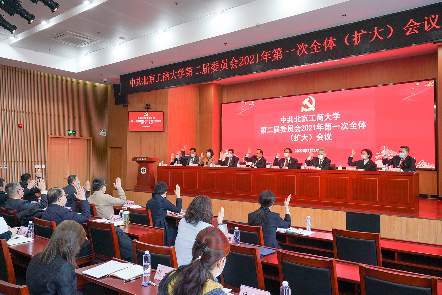 2月25日,中共北京工商大学第二届委员会2021年第一次全体(扩大)会议在阜成路校区召开,全面总结2020年学校党委工作,研究部署下一步工作任务。全体校领导、党委委员、中层干部参加会议。会议由党委书记黄先开主持。