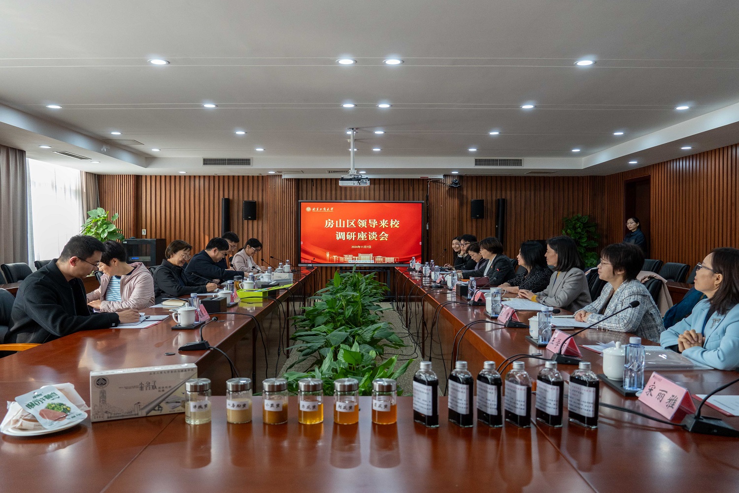 校党委副书记宋晓欣主持活动。学校副校长刘艳楠,党委常委、党委组织部部长兼党委统战部部长武晶晶,语言与传播学院院长王擎,设计与艺术学院党委书记王海伟,数字未来中心副主任刘禹孜,科学研究院自然科学处副处长王学丽,食品与健康学院教授罗丽萍,轻工科学与工程学院教授宋丽雅,食品与健康学院副教授张弛等人参加本次调研座谈活动。