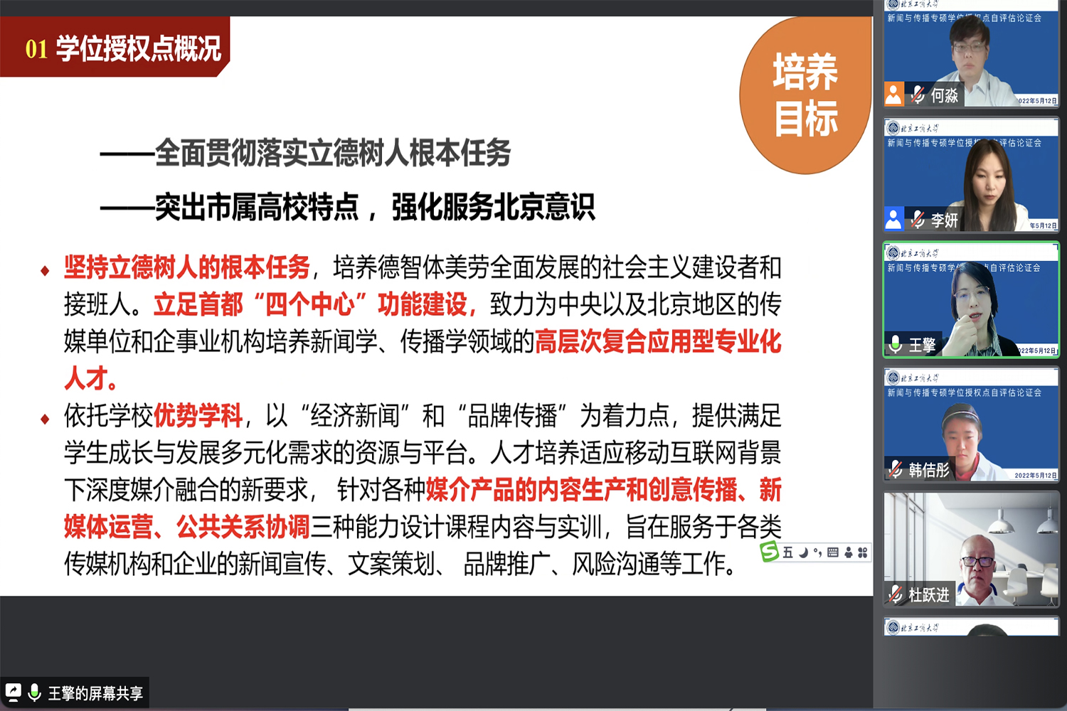 经评议和讨论,专家组一致认为我校新闻与传播专业硕士学位授权点坚持需求导向,力求错位发展,培养目标明确,在校生满意度高,人才培养相关成果对首都经济社会发展具有持续的促进作用。专家组建议学位授权点进一步凝练人才培养特色,精准分析北京市对新闻传播人才的需求,突出人才培养优势,提高人才培养成果与首都经济社会发展的匹配度。