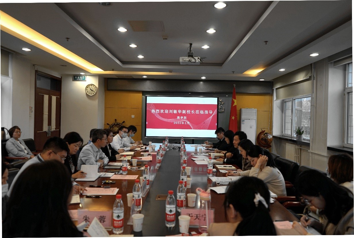 在商学院,学院党委书记张春萍对副校长刘敏华一行的到来表示热烈欢迎。院长毛新述从学科建设、本科生教学、研究生工作、学生工作、科研工作、师资建设、国际交流与认证工作、校友工作和学校支持等九个方面介绍了商学院的发展情况,对学科建设目标、学生工作及科研工作的成果等进行了汇报,提出了学院在新发展阶段的奋斗目标、愿景、重点任务,以及面临的问题与挑战。张春萍从发挥党建引领推进学院发展、强化立德树人推进人才培养两个方面汇报了学院工作。副院长王楠对国际认证工作进行了汇报。贺冬萌、毕平平、录驰冲逐一发言,就国际留学生管理、国际化认证、人才引进、博士后建设等进行了交流,提出建议,并表示将加强与商学院沟通,共同研究解决商学院在发展过程中的问题,推进商学院的改革和发展。