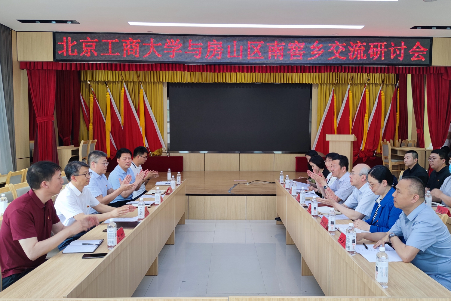 在调研座谈中,双方进行了充分交流。房山区委组织部副部长、区委两新工委书记吴广先简要介绍了房山区的历史变迁和发展现状,南窖乡党委书记邱刚同志详细讲述了南窖乡乡村振兴的具体实践。刘敏华介绍了本次党日活动目的及主要构想。他指出,此次主题党日活动让党员干部走出学校,走进乡村,了解房山区乡村振兴的经验,继承和发扬红色精神。他强调,面对新的发展形势,要将“双一流”建设融入到学校所在地区的事业发展中,实现学校与地区高质量发展“同频共振”。他提出,要建设乡村振兴研究院,从政策研究、人才培养、成果转化等方面加强学校和房山区校地合作,共同为双方高质量发展作出贡献。希望以此次活动为契机,搭建起双方沟通的桥梁,进一步加强交流、密切合作,深化产学研合作和科技成果落地,服务房山区转型跨越发展。