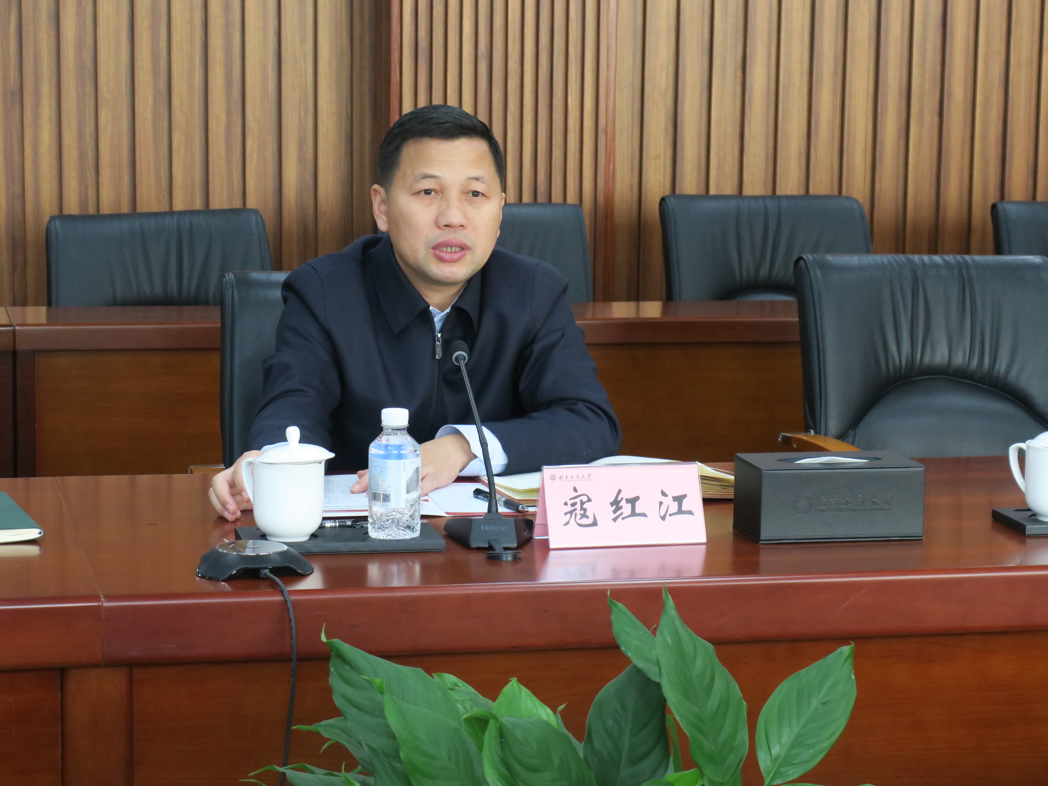 寇红江详细介绍了我校“工商一体化”发展理念与“双一流”创建目标,重点介绍了学校在食品轻工、商科、数据科学等学科的特色优势,以及前期与房山区在科技成果转化、产业落地、教育协同等方面的深厚合作基础。他强调,检校合作应秉持项目化、平台化、机制化原则,推动双方资源互补、优势叠加,实现共赢发展。
