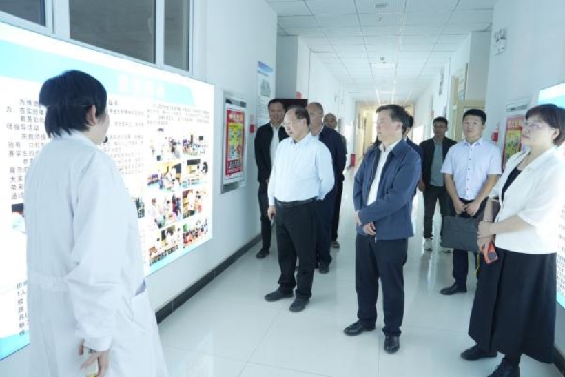 在和田师范专科学校实训楼,黄先开一行参观了生物标本室、化学实验室、思政中心等,与现场师生进行了亲切交流,深入了解了该校近年来在学科发展、人才培养等方面取得的显著成效。