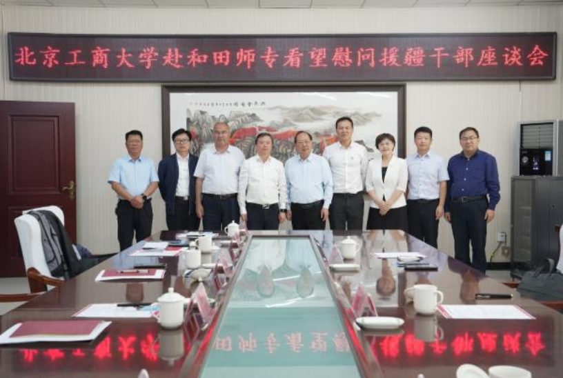 9月27日下午,黄先开一行来到北京市援疆和田指挥部,指挥部党委书记、指挥李志遂对黄先开一行来和田调研慰问表示欢迎,对北京工商大学多年来对北京援疆工作的大力支持表示感谢。他介绍了北京对口支援新疆和田的历程和援疆干部人才等基本情况,特别强调要认真学习贯彻落实习近平总书记关于新疆工作重要讲话和重要指示批示精神,完整准确全面贯彻新时代党的治疆方略,以首善标准持续做好支援和田工作,充分发挥援疆干部人才作用,不断推动援疆工作高质量发展。