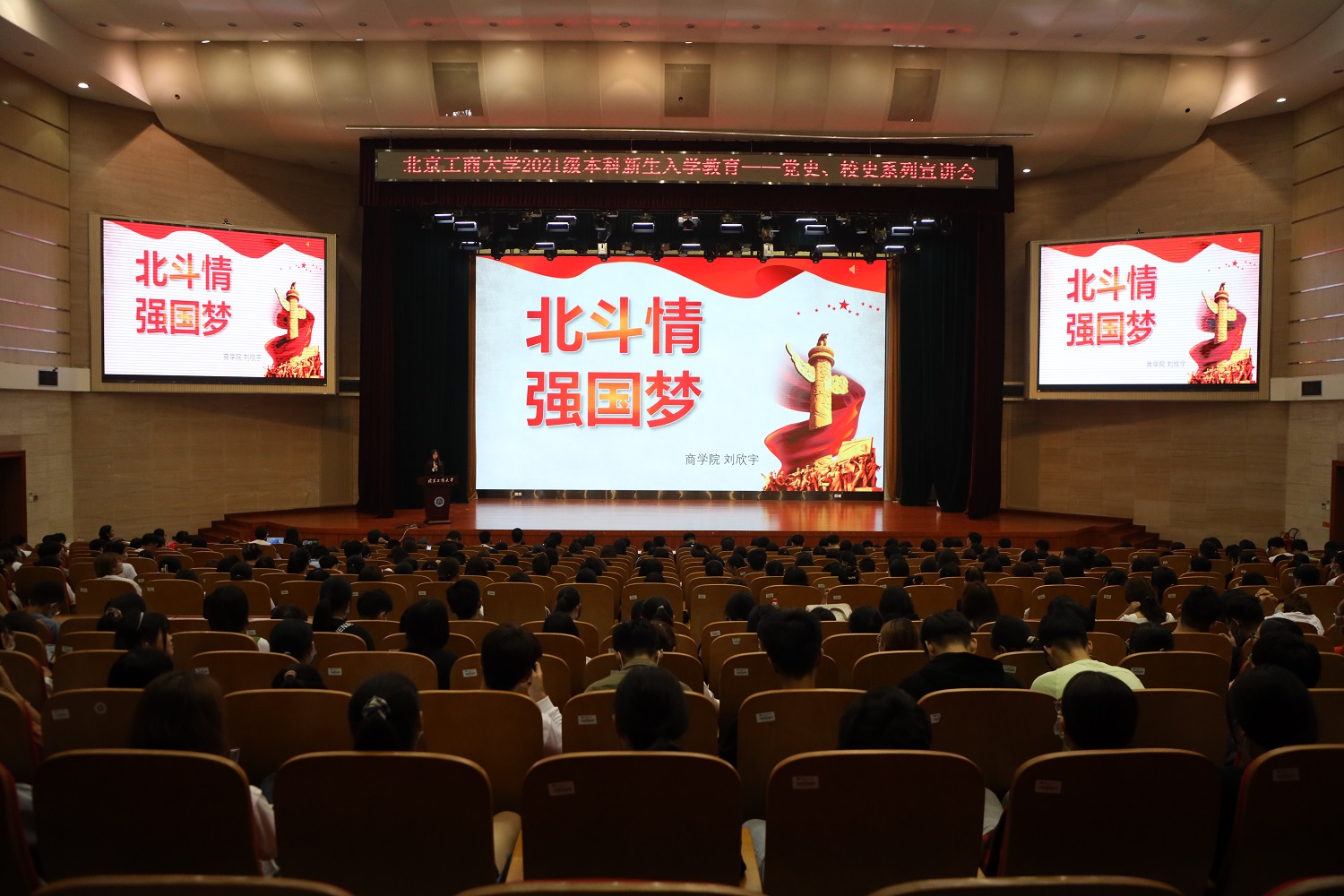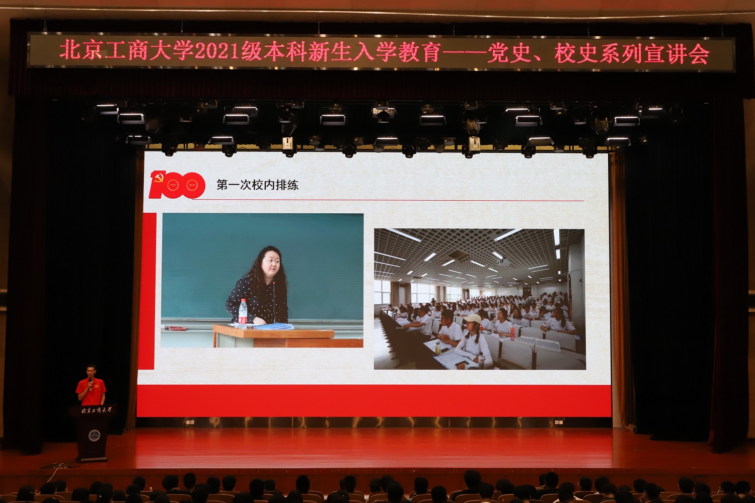 根据《北京工商大学阶梯式思政教育大一年级教育大纲》安排,结合“永远跟党走”主题教育活动内容,9月11、12日,学校面向2021级本科新生举办党史、校史系列宣讲会。宣讲团成员由党委学生工作部“不忘初心、牢记使命”学生理论学习宣讲团、“观澜”辅导员工作室中国故事宣讲团以及《伟大征程》文艺演出大学生合唱团代表共同组成。