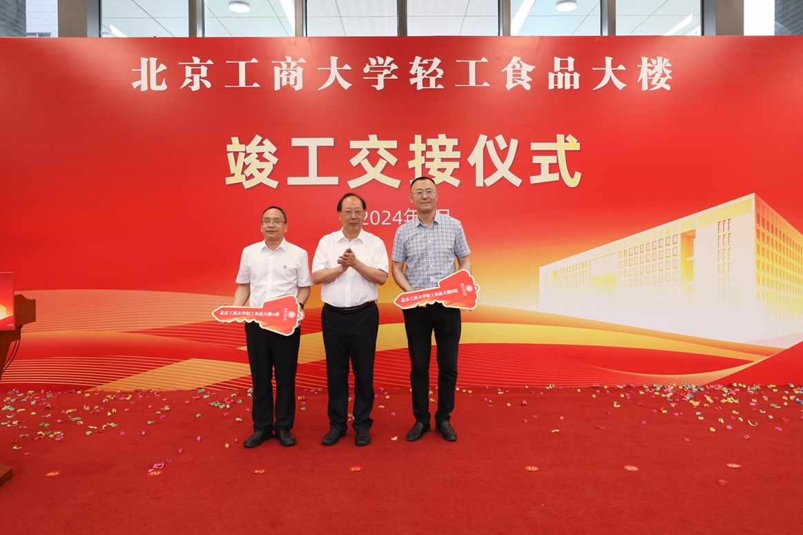 7月2日上午,学校举行轻工食品大楼竣工交接仪式。市委教育工委委员、市教委副主任王方,市教委财务处处长张宪国、民办教育处处长马驰知、基建处副处长王虹;房山区区委常委、副区长靳璐,良乡大学城管委会副主任徐振安;北京建工集团有限责任公司副总经理陈连义,北京建工三建公司党委副书记、总经理李涛;北京工商大学党委书记黄先开,党委副书记李中奇、宋晓欣,党委常委、纪委书记、二级高级监察官杨红,党委常委、副校长毛新述,以及学校党政办公室、发展规划处、国有资产管理处、校园建设处、公共事务处、保卫处、网络与信息化管理中心、图书馆、大型仪器设备共享中心、食品与健康学院、轻工科学与工程学院负责人参加仪式,仪式由党委常委、副校长郑文红主持。