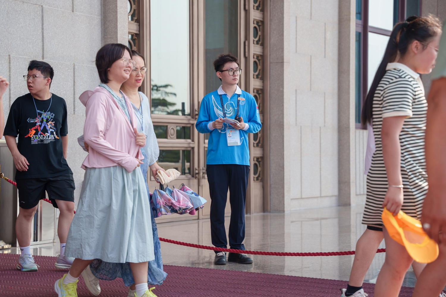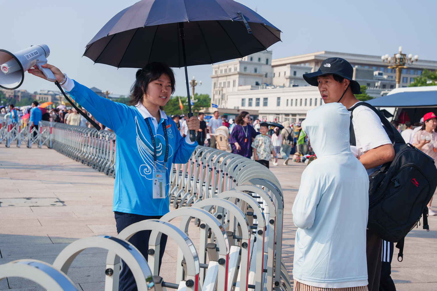 面对来自五湖四海的瞻仰群众,他们以清晰的指引、流利的外语和温暖的微笑服务每一位瞻仰群众。那一声声亲切的“谢谢”,更是化作一股股暖流,温暖了志愿者们的心窝。志愿者张艳洁说道:“烈日下,衣服被汗浸透,我始终保持微笑,将温馨提醒融入‘您好,请收好证件’的语言中,岗位虽小,但能把敬意传递出去,我就充满骄傲。”李红峥也谈到:“这份经历不仅锻炼了我沟通与解决问题的能力,更让我深刻理解到奉献与互助的价值。微光汇聚,亦可照亮他人。它点燃了我内心的温暖,也坚定了我继续投身志愿服务的决心。”