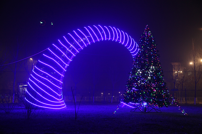 记者从负责校园装扮的后勤管理处了解到,今年是学校第三年进行校园装扮,后勤管理处12月14日开始具体布置,工作人员们不畏严寒,加班加点,历时10天基本完成两校区的装扮工作,并根据实际效果不断完善。此次节庆彩灯寓意百花盛开,蓝色与“中国梦”的主题契合。良乡校区主要是根据“两点一线”思路来设计,两点即为行政楼以及文体馆前的建筑,一线为连通教学区和生活区的天桥。自彩灯装扮完成以来,许多师生纷纷驻足于此,合影留念,感受着学校为大家准备的惊喜与温暖。