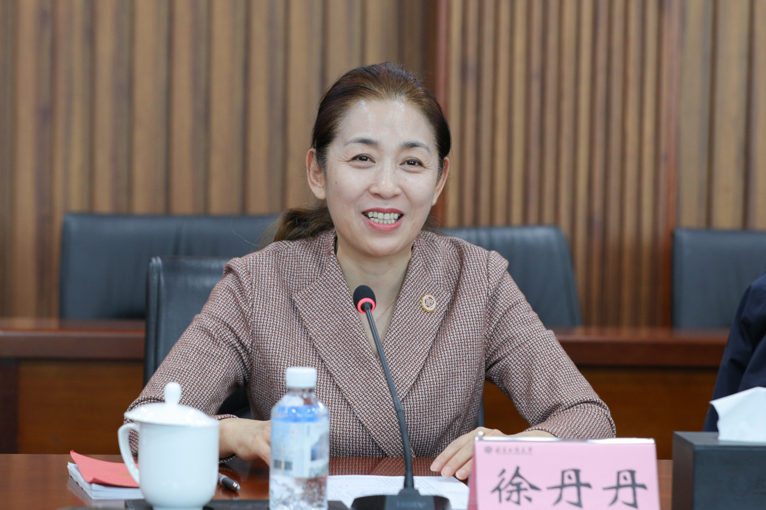徐丹丹对铜陵学院一行的到访表示热烈欢迎。她结合学校的办学历史与发展沿革,重点介绍了学校在长期办学实践中形成的鲜明特色,围绕“工商一体化”发展模式、学科专业群的优化布局与建设成果,以及近年来深入推进的书院制、微专业、学分制等协同改革核心举措,系统分享了学校在深化教育教学改革方面的探索实践与积极成效。她强调,学校始终以服务国家战略和首都发展为根本指引,坚持立德树人,以人才培养为核心任务,未来将持续聚焦并着力提升复合型人才培养质量,为国家和首都经济发展输送更多高质量人才。