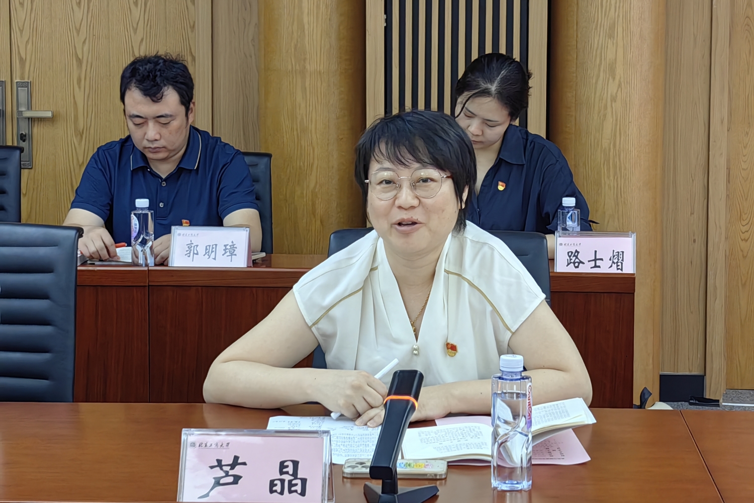 徐丹丹认真听取了学院汇报和研讨发言,充分肯定了学院开展丰富多样的学习活动和取得的实效。她重申了纪律教育的重要性和必要性,强调要从首都政治定位、站稳人民立场的高度开展好党纪学习教育,在全链条全周期全覆盖上持续用力,作为教师要提高政治站位,不仅要以生为本、以本为本,更要做到心中有规矩,行动守准则。针对学院下一步提高党纪学习教育的效果,她提出三点要求:一是坚持引领示范,发挥好先学促学的作用;二是坚持制度先行,提升基层治理效能;三是坚持积极作为,促进学院事业发展。徐丹丹希望学院党员干部以高度的政治责任感和强烈的历史使命感,把党纪学习教育融入到本职工作中,推动学院在招生就业、人才培养、科学研究、学科建设等各方面走在前作表率,为高水平研究型大学建设和双一流建设贡献力量。