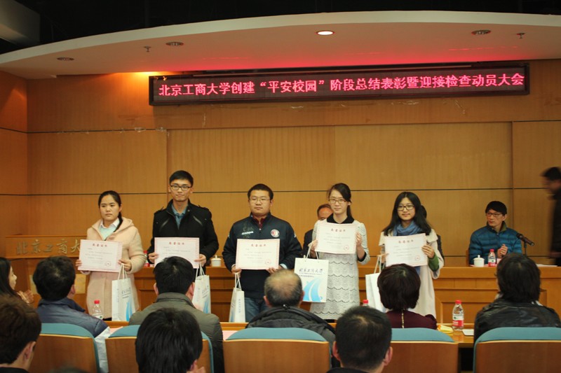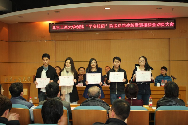 为了进一步提升学校“平安校园”创建工作整体水平,并对在前一阶段平安校园建设上有突出贡献的学生集体和个人提出表彰,11月16日下午我校在阜成路校区召开创建“平安校园”(学生方面)阶段总结表彰暨迎接检查动员大会。校党委副书记卢思锋、保卫处处长顿劲松、后勤处处长卢灿宽、学生处副处长徐红京、各学院党总支副书记、辅导员老师、学生优秀集体和个人代表180余人参加本次大会,会议由团委书记吕良主持。