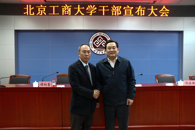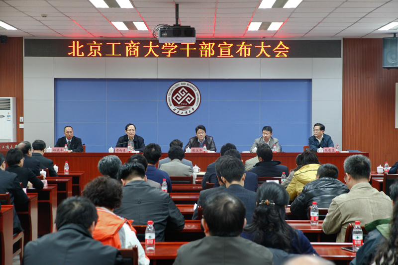 11月26日下午,北京工商大学干部宣布大会在阜成路校区召开。市委教育工委委员、干部处处长陈江华,市委组织部宣教政法干部处处长冷强田等出席大会,校领导、学校中层正职干部等40余人参加大会。会议由党委书记谭向勇主持。