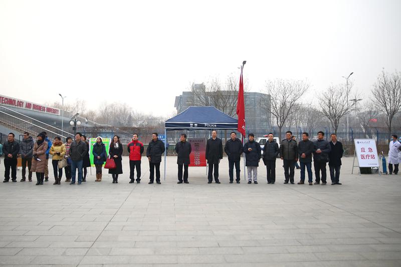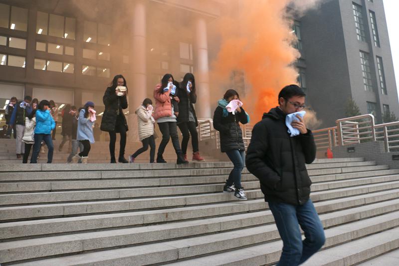 为进一步做好学校防火安全工作,增强师生员工消防安全意识,提高师生员工安全防范及自救能力,12月9日,学校在图书馆组织开展安全应急疏散演习。300多名师生参加了演习活动。演习总指挥由党委副书记卢思锋担任。图书馆、保卫处、校办、后勤管理处、学生处、宣传部、国有资产管理处、规划建设处、校医院及各学院安全负责人协助组织、保障演习顺利完成。 下午16:00,卢思锋副书记宣布演习正式开始。图书馆西侧烟雾滚滚模拟301阅览室发生火灾,图书馆办公室同志向馆长报告火情,馆长指示灭火组立即灭火、向保卫处通报并准备疏散。随后,馆内警报响起、应急广播开启。演习显示阅览室火势蔓延,无法控制,学校应急分队到达图书馆。在馆长“通知全体按预案撤离,通报保卫处”的处置方案下,300余名学生在各阅览室值班员、保安员的组织下以毛巾掩面,有序从图书馆撤离,在图书馆西侧集合,进行人数清点。在人员撤离和应急分队继续灭火的同时,现场还演练了救护组救护因伤被困人员、警戒组协助消防队保护现场、校医院医生在救护所内对伤者进行救治等。演习模拟逼真,人员撤离有序。 全部疏散完毕后,保卫处和图书馆对现场人员疏散情况进行报告、国有资产管理处到达现场清查火灾损失,同时,保卫处协助公安消防部门保护现场,清查火灾原因。 演习结束后,卢思锋副书记发表讲话,强调了安全应急疏散演习的意义,并对参与师生的合作表示感谢。随后,卢思锋主持召开会议对本次演习进行总结,与会同志对演习的效果、场景的设置、各环节在演习中的呈现等发表了看法,并对开展好下一次演习提出了建议。