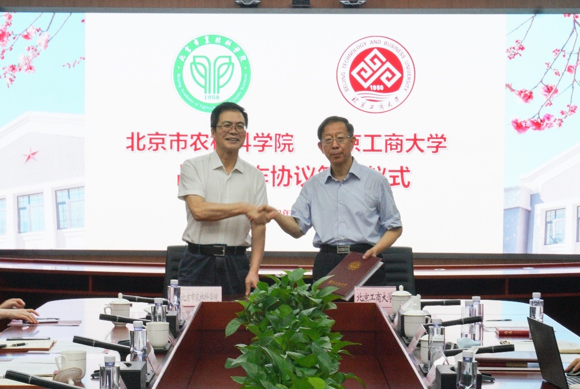 7月27日,学校与北京市农林科学院签署战略合作协议。北京市农林科学院党组书记吴宝新、院长李成贵,学校党委书记黄先开,党委副书记、校长孙宝国出席签约仪式。会议由学校党委常委、副校长刘敏华主持。