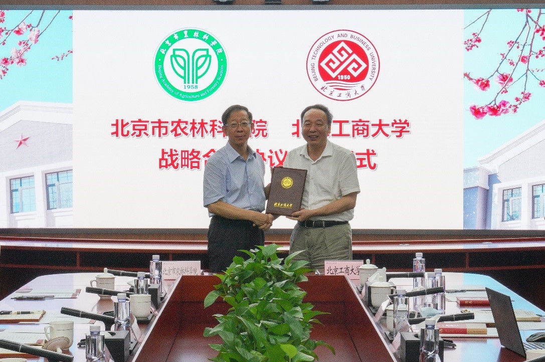 会上,孙宝国向北京市农林科学院赵春江院士授予北京工商大学兼职教授聘书。