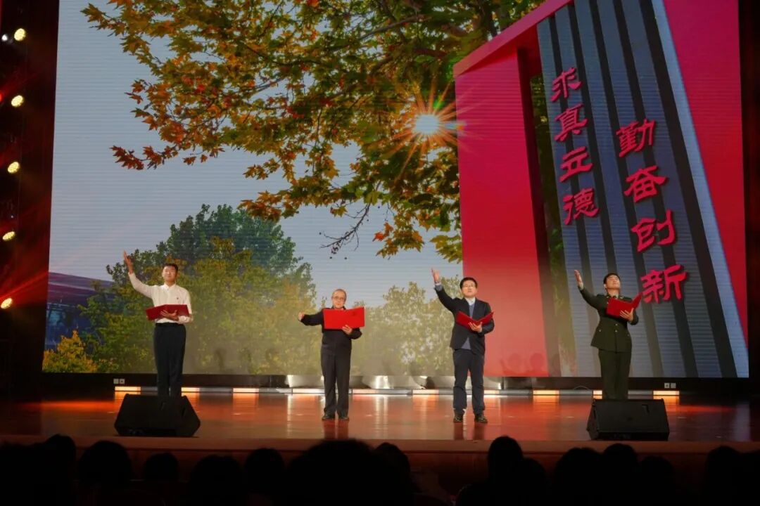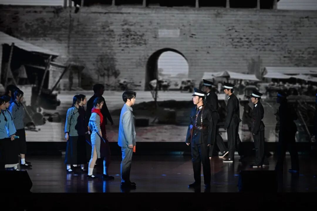 大会在首部校史舞台剧《炬火相传:青春的誓言》中拉开帷幕。该剧以北工商的红色校史为依托,以老校长姚依林为精神符号,艺术化地再现了“一二·九”运动中的真实历史瞬间,以实际行动践行着“请党放心,强国有我”的青春誓言,描绘出北工商青年弘扬伟大抗战精神、与工商共成长、与祖国同奋进的动人图景。这份跨越九十年的青春热血与爱国赤诚,引发全场强烈情感共鸣,掌声经久不息。