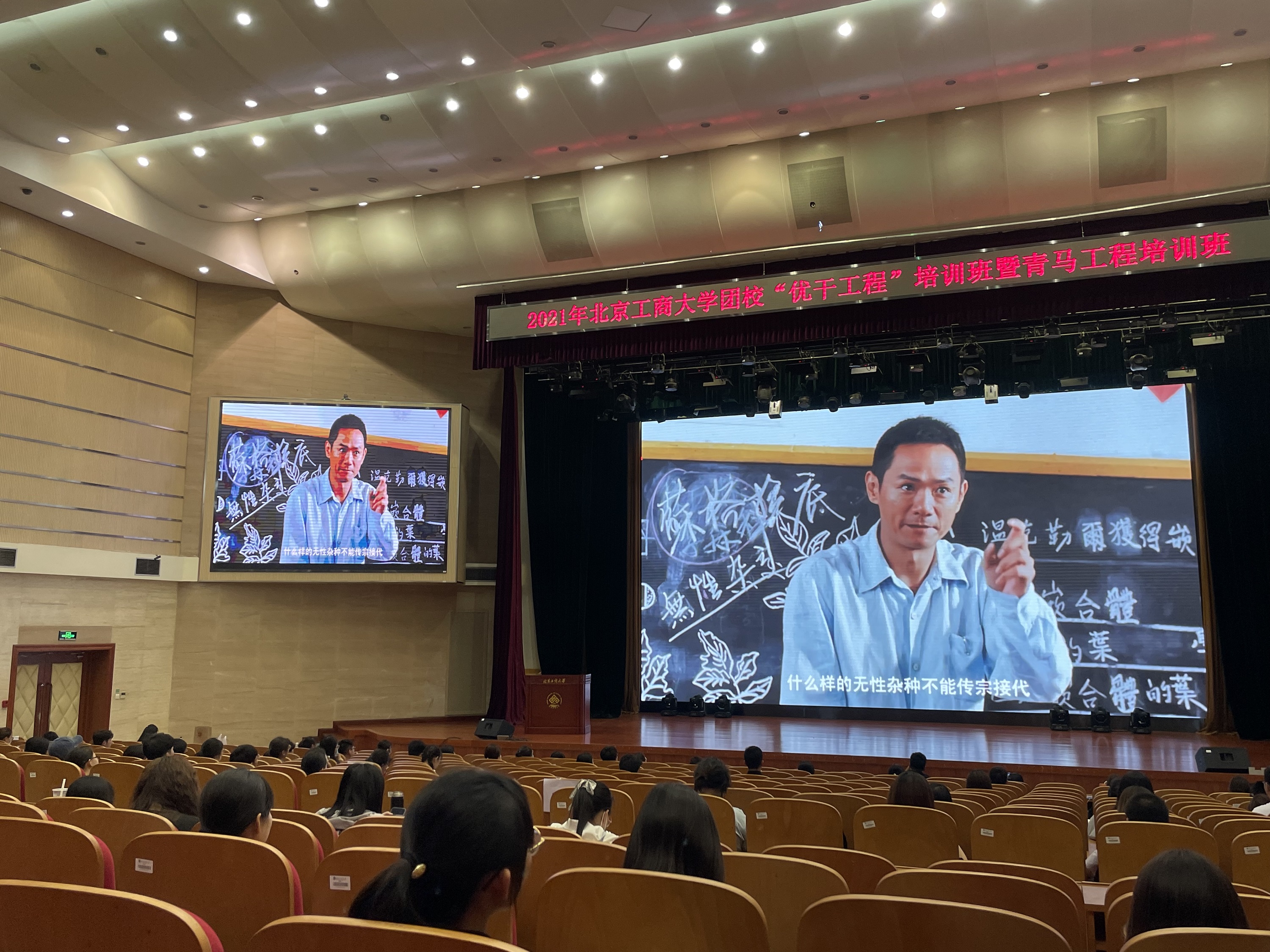 5月30日,我校2021年团校“优干工程”培训班暨青马工程培训班在良乡主校区开班,校团委及各学院团学骨干组成的600余名学员代表到场并一起观看电影《袁隆平》,再次表达北工商青年学子对袁隆平院士的深切哀悼,和对不朽精神的瞻仰与继承。