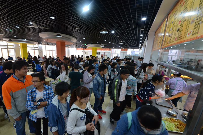 在生活区一层食堂,由于刚刚结束晨读晨练活动,食堂的用餐人数明显达到了一个峰值。记者发现,平时只有4个档口的打餐区,现在又增加了两个,同学们排成6队有序打餐,明显提升了就餐效率。据环境工程15级新生李楠介绍,在晨读晨练活动开始后,由于活动结束时间基本相同,同一时段就餐人数增多,一度出现了用餐人员拥挤、有的学生买不到早餐等情况。同学们将这个意见反映到学校后,后勤处对此非常重视,立即调整早餐备餐方案,及时增加品种、数量及售餐窗口,以满足新生及老生都能够按时吃好早餐。“食堂早上明显感觉不那么拥挤了,每一个窗口排一分钟左右时间就可以买心仪的早饭,秩序也变得井然。”李楠笑着说。