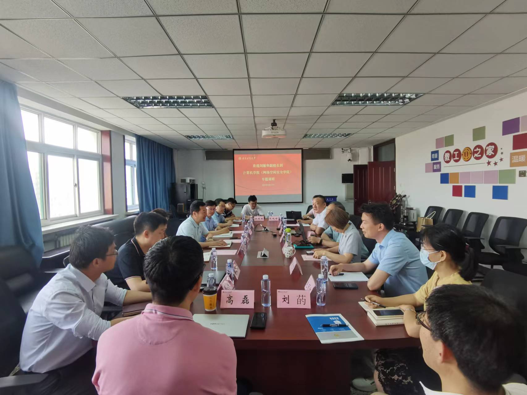 蔡强对参会人员进行了介绍。院长李海生代表班子汇报了计算机学院整体情况。介绍了学院在学科建设、专业建设、科学研究、人才培养等方面取得的成绩以及面临的困难和挑战,汇报了下一步的工作思路和重点举措。重点围绕网络空间安全学院工作,报告了学院一年来围绕学科建设、申博、筹建网络空间安全本科专业、以及校企合作交流几个方面开展的工作情况。学院其他班子成员逐一发言,详细汇报了学院党建引领、学生工作、外事工作、实验室管理等方面的情况。与会教师纷纷发言,表达了在教学、科研、推动学校、学院发展方面的感悟与体会,并提出一些困惑和想法。录驰冲副处长就老师们关心的一些话题做了解答。