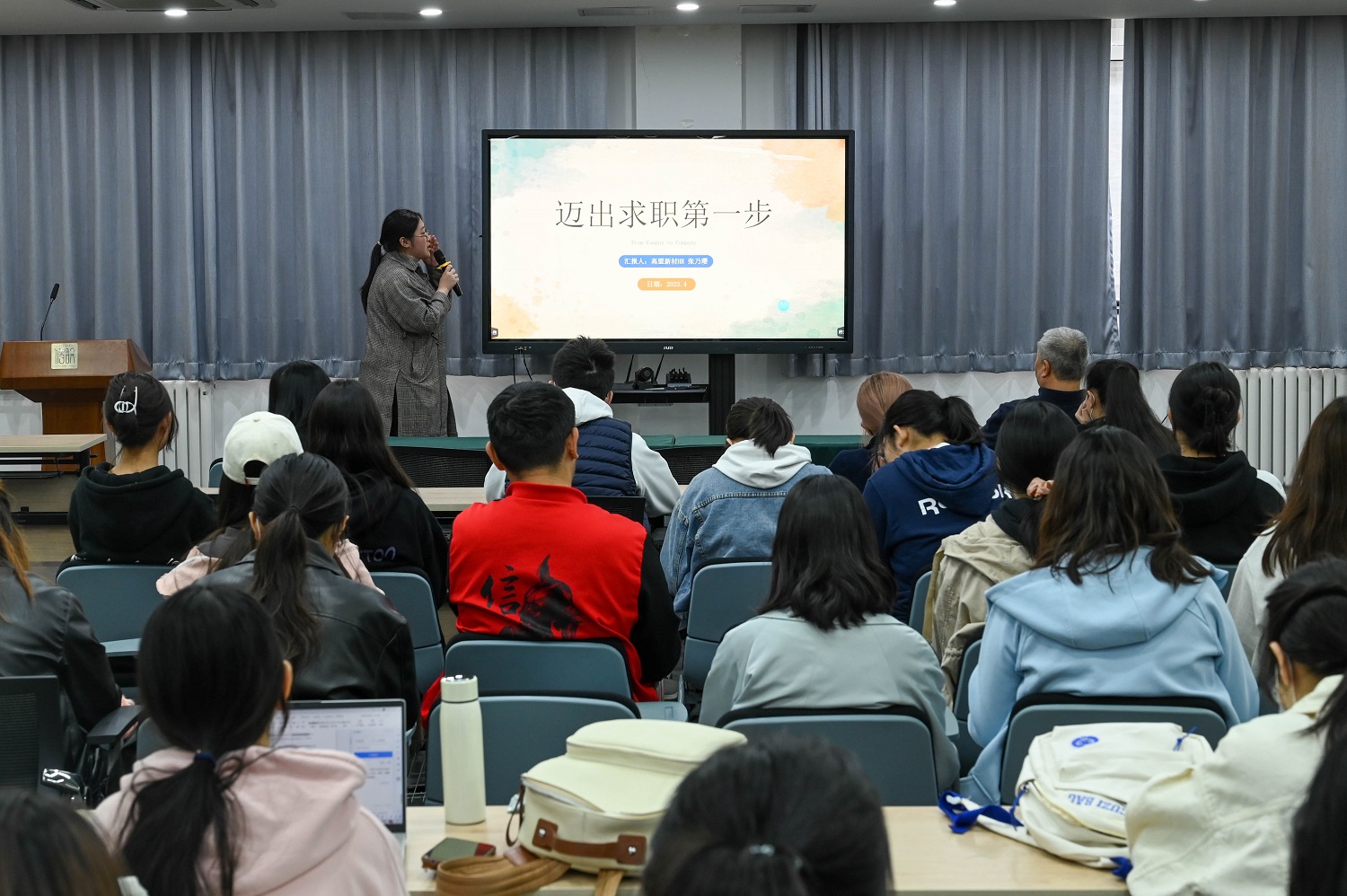 “人社局长进校园”活动在良乡主校区举办。房山区人力资源与社会保障局副局长卢祥以《志存高远,厚积薄发;绽放理想,成就未来》为题开展了政策宣讲。北京高盟新材料股份有限公司人力资源主管张乃璎以《如何迈出求职第一步》为题进行了就业指导主题分享。