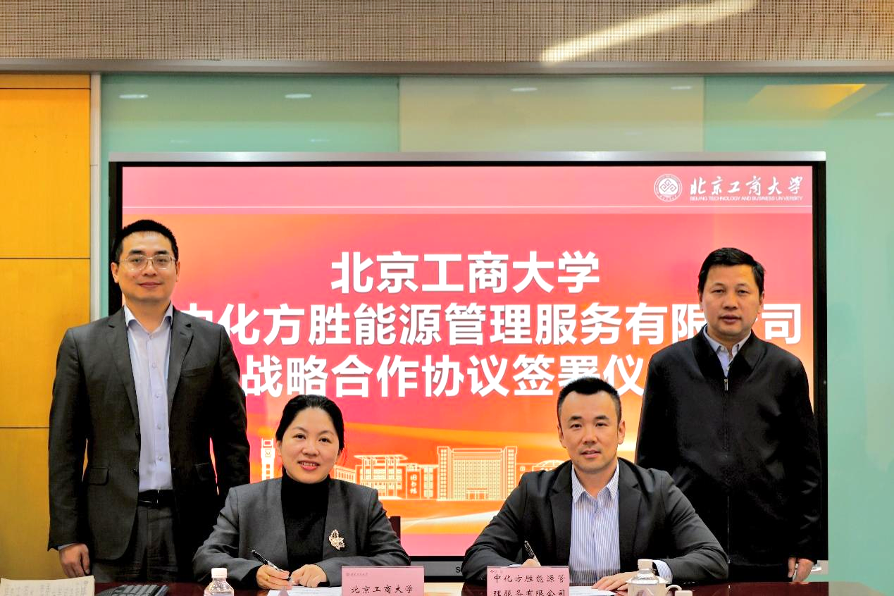 12月25日下午,北京工商大学与中化方胜能源管理服务有限公司合作签约暨授牌仪式在阜成路校区举行。学校党委常委、副校长寇红江,中化方胜能源管理服务有限公司总经理孟晓曦出席仪式并致辞。仪式由寇红江主持。