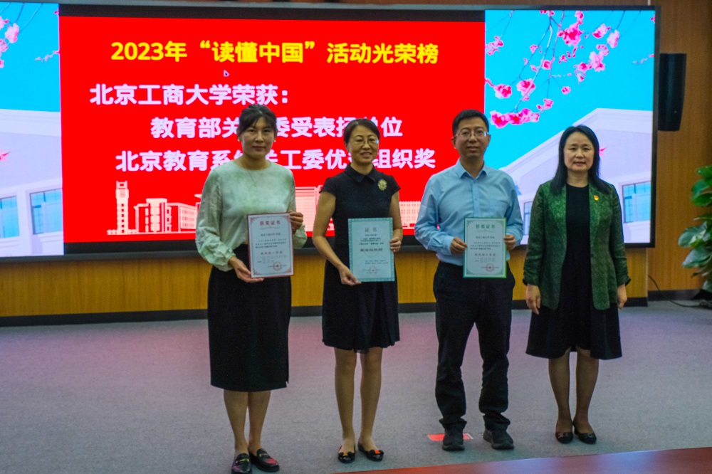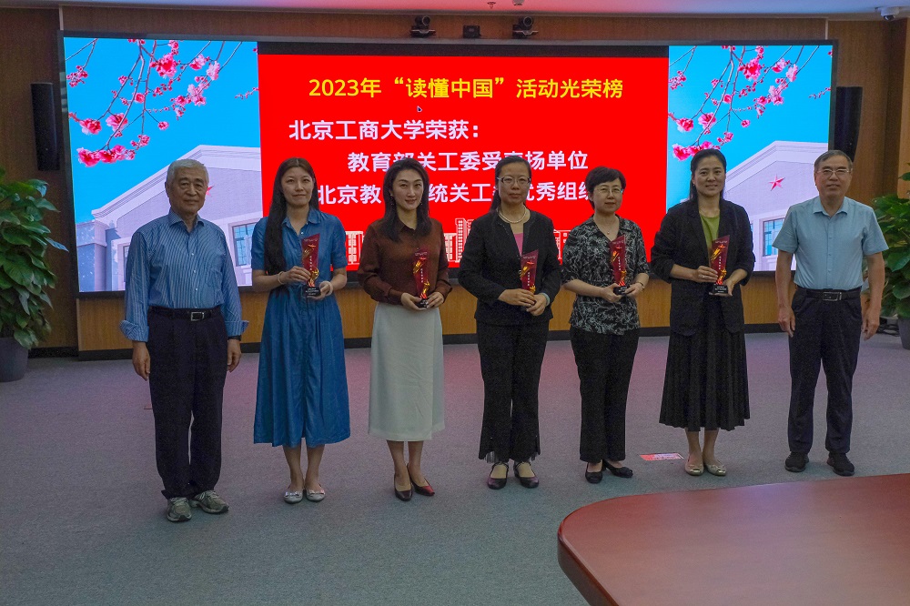 我校在2023年“读懂中国”活动中取得优异成绩,会议对有关学院和个人进行了表彰。学校关工委副主任马廷钧宣读表彰通报,并与学校关工委副主任潘伯洲一起向获得学校“最佳组织奖”“优秀组织奖”的学院颁发奖杯。校党委副书记、关工委主任宋晓欣向获得教育部关工委、北京教育系统关工委微视频、征文奖项的个人颁发证书并表示祝贺。