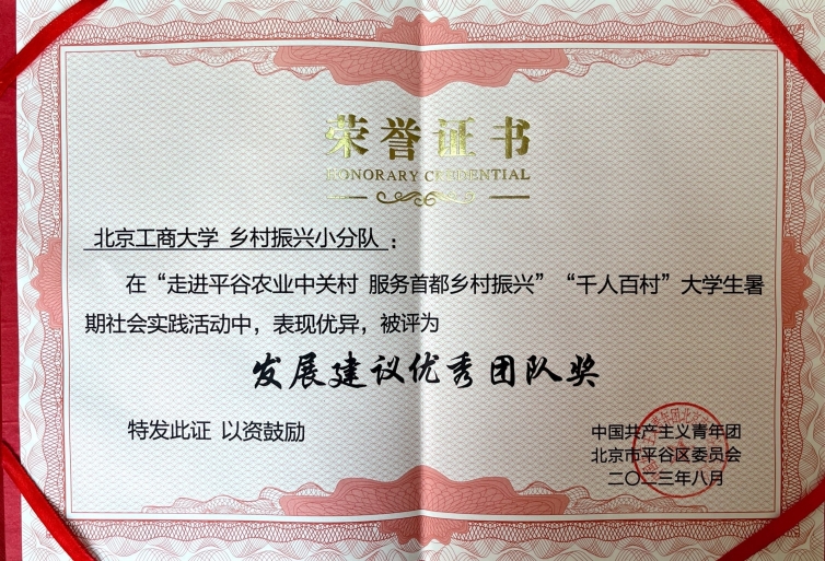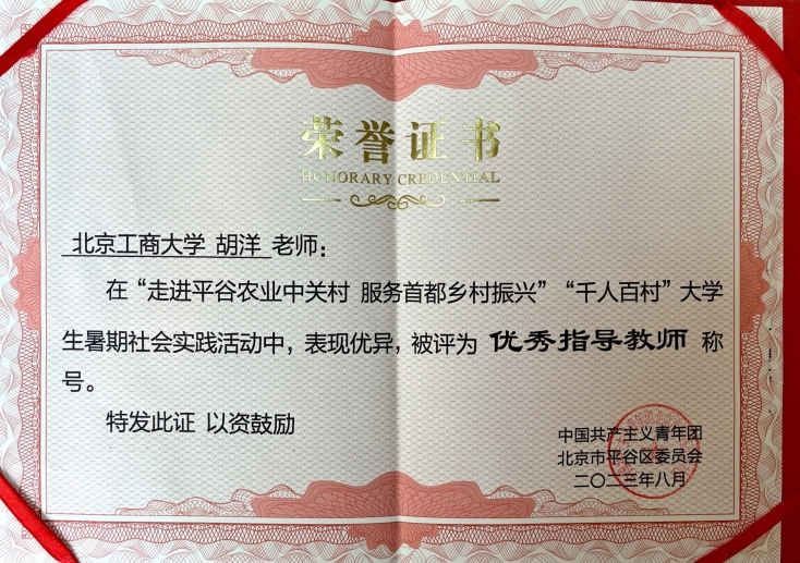 近日,我校在“走进平谷农业中关村 服务首都乡村振兴”首都高校“千人百村”大学生暑期社会实践活动中荣获“优秀组织奖”,由计算机与人工智能学院五名师生组成的社会实践乡村振兴小分队获评“发展建议优秀团队奖”,实践团带队老师胡洋获评“优秀指导教师”。