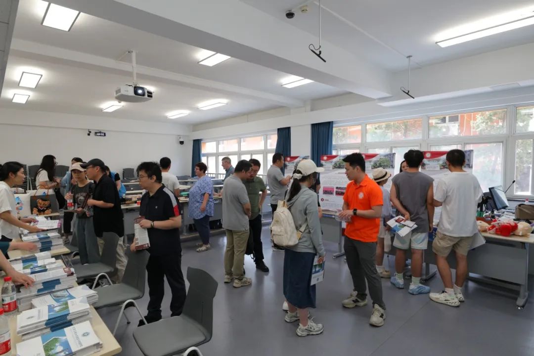 下午2点,教三楼内各学院咨询展台亮点满满。学院负责人、教授身着院服,热情洋溢地为考生和家长介绍专业特色和高招政策。科创产品和宣传材料摆满了活动现场。现场人头攒动,考生和家长积极提问,与学院老师亲切交流。