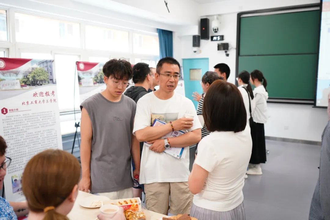 14:30、15:30、16:30高招政策宣讲会、人才培养专场宣讲会举行本科招生办公室主任卜晓媛、教务处副处长录驰冲详细介绍了北工商的基本情况、特色专业2025年招生计划和报考建议。室外天气炎热,宣讲会现场却凉爽怡人。教室内座无虚席,不少家长积极互动,现场氛围热烈。