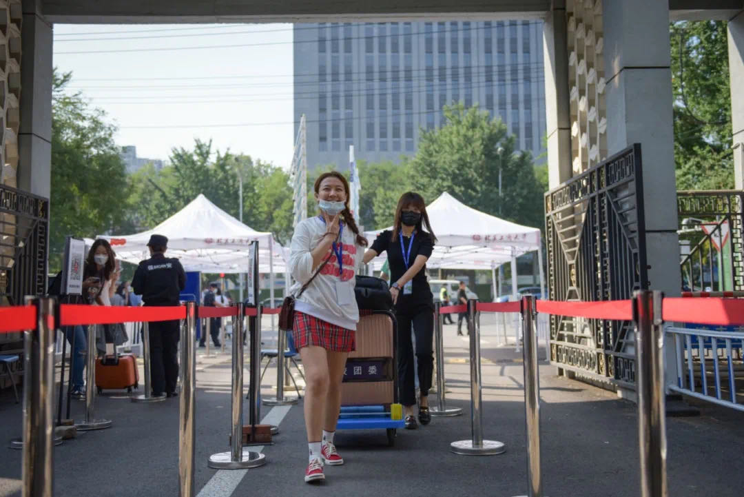 志愿者们在校门口热情迎接着新生,帮助新生搬运行李,为他们送上来自北工商的第一份温暖。法学院2021级新生宁欣峤说:“志愿者们非常热情,不仅帮忙搬运行李、引导完成入校手续,还向我介绍学院特色。他们让我的紧张荡然无存,虽然是第一次来,但我觉得自己仿佛早已是北工商大家庭的一员。