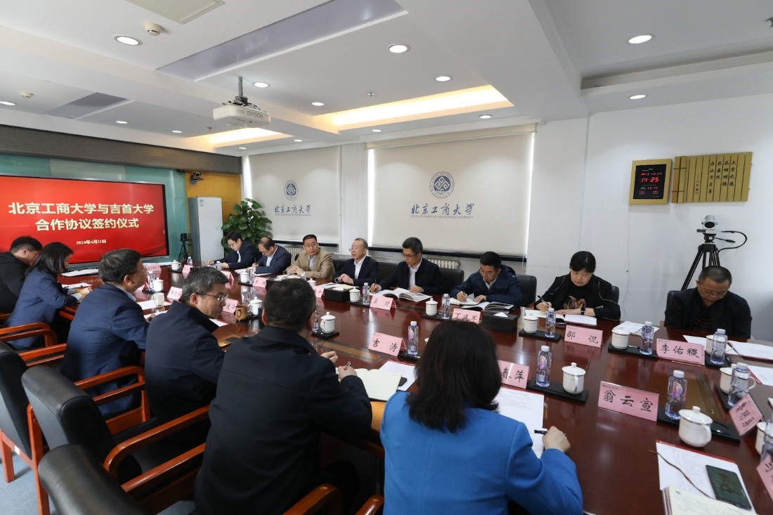 双方共同观看了我校宣传片。郭建华代表学校对黎奇升一行来访表示欢迎,介绍了学校的历史沿革、发展现状与奋斗目标,重点阐述了学校为加快创建“双一流”学科、全面建设高水平研究型大学作出的努力和取得的成效。他表示,近年来,学校锚定高水平研究型大学办学定位,聚焦国家和首都经济社会发展所需,按照“商科做强、工科做精、工商融合、双轮驱动”的建设思路,不断深化教育教学数字化转型,以数据科学与人工智能为链接,以人文社科为支撑,探索实施商科与工科主动对接、深度融合的方法和路径,努力推动形成全校上下一盘棋的发展局面。吉首大学作为湖南省高水平建设大学、湖南省“双一流”建设高校,在数学、旅游管理、轻工、食品等方面具有突出优势,双方具有较大合作空间和潜力。希望两校以此次合作签约为契机,深化全方位、多领域合作,推动两校共同发展、共赢未来,为高等教育强国建设贡献更大力量。