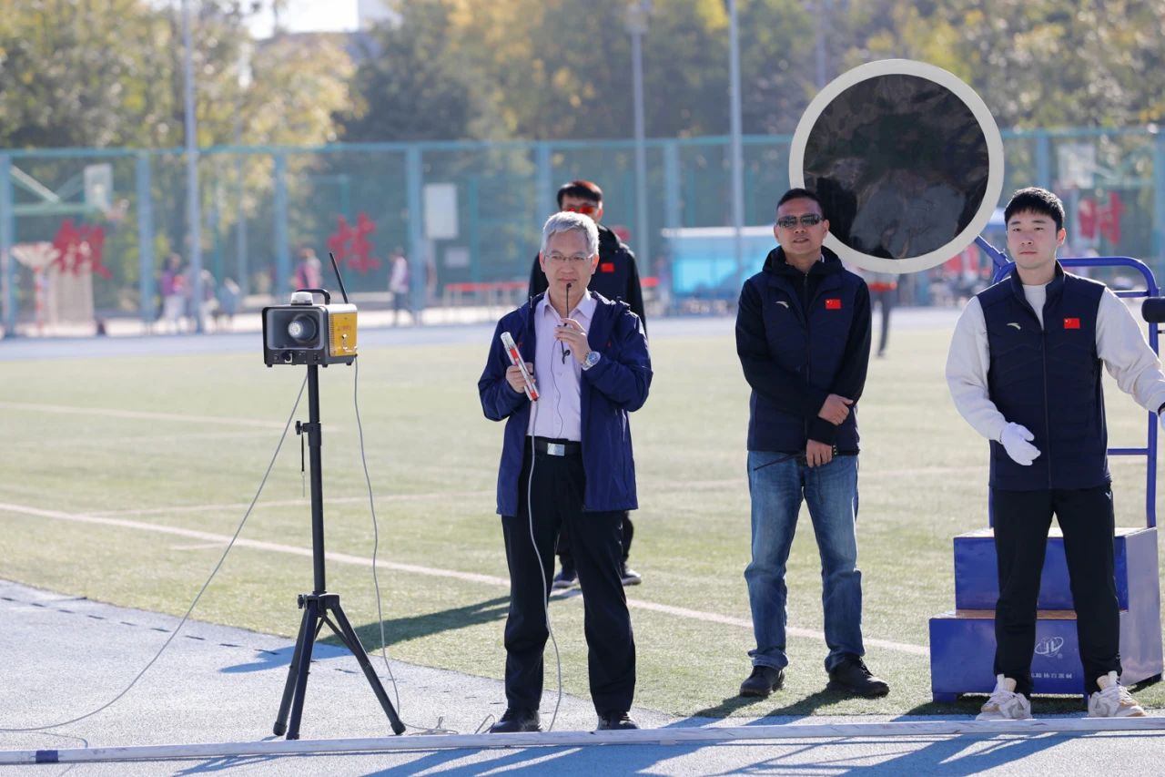 左敏宣布北京工商大学2023新生运动会开幕,李中奇为比赛鸣枪。