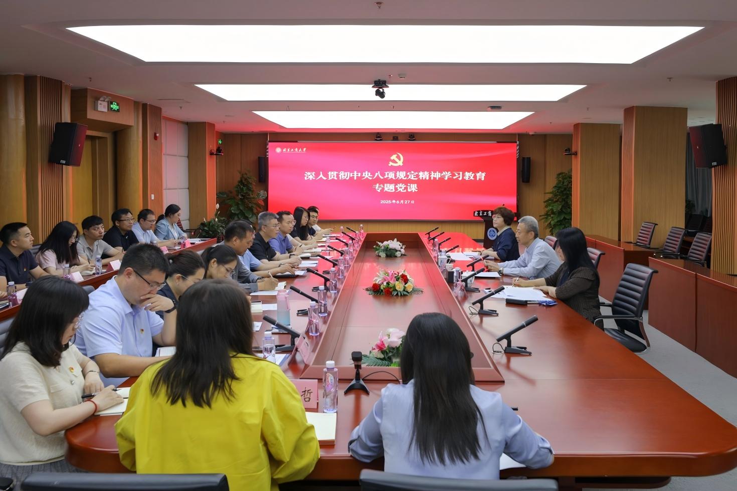 为扎实推进深入贯彻中央八项规定精神学习教育,6月27日,学校党委书记沈千帆以“淬炼过硬政治品格,展现年轻干部担当,以作风建设新成效开创学校发展新局面”为题,为学校年轻干部教师代表讲授学习教育专题党课。学校年轻处级干部和院长助理、顶岗锻炼教师代表参加学习,党课由学校党委副书记宋晓欣主持。