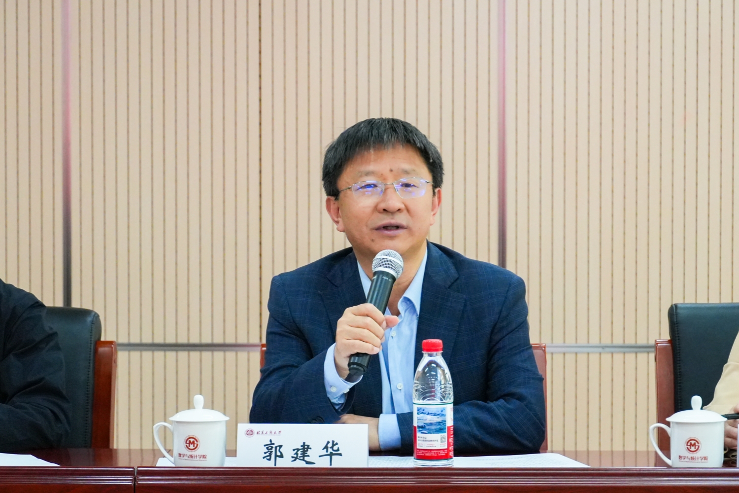 郭建华对出席本次交流会的领导、专家和各界朋友表示热烈欢迎,他对长期以来关心和支持学校发展的中国商业统计学会、朝阳区人社局、房山区人社局,以及各兄弟高校、各行业企业表示诚挚感谢。郭建华讲到,作为全国数字经济标杆城市,北京经济规模巨大,发展前景广阔。高校作为创新策源的“第一动力源”,企业作为需求牵引的“第一驱动力”,政府作为制度保障的“第一护航者”,要发挥“政-校-企”三者协同作用,构建“教育链-产业链-政策链”深度咬合的生态体系,加快形成新质生产力。郭建华介绍了学校发展建设情况,重点阐述了“工商一体化”发展战略,他表示,学校主动对接国家战略和首都发展需求,高度重视发挥数据科学在新工科和新商科建设中的链接赋能作用,希望以此次会议为契机,携手共建“北京数据科学产教融合生态圈”,为首都高质量发展注入强劲创新动能!