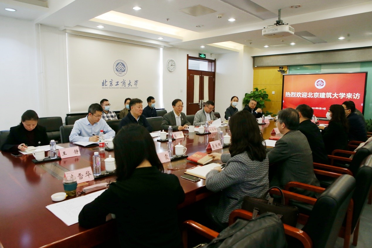 张大玉对我校的热情接待表示感谢,并介绍了北京建筑大学在服务北京、加快发展方面面临的机遇和挑战。他谈到,北京建筑大学作为北京地区唯一一所建筑类高等学校,特色鲜明、优势突出,面对新形势新任务,亟待进一步优化重组、改造升级,创造更多标志性成果,取得更大突破性进展。希望借鉴北京工商大学的经验和做法,在学科建设、科研工作、高端平台建设、高水平人才引育等方面加强了解,深化合作,共同提升。