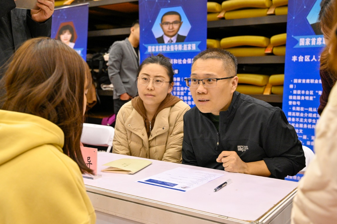 此次双选会由学校招生就业处与北京高校大学生就业创业指导中心联合主办,东城区、丰台区、大兴区、门头沟区人社局作为协作单位推荐区内优秀用人单位参会。房山区人社局局长隗合庆莅临现场指导,表示将继续给予学校就业工作大力支持,共同助力高校毕业生高质量就业。