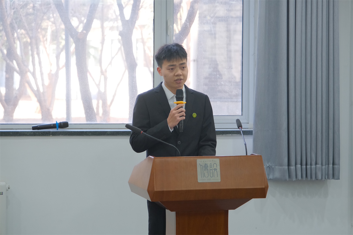 数学与统计学院李建军作为新聘⼤使代表发言,他结合自身成⻓经历讲述了应聘资助宣传⼤使的决心与动力,并承诺一定会时刻铭记自己肩负的责任,胸怀感恩之⼼,践行初心使命。上届优秀大使代表——商学院郑莉平进⾏模拟宣讲,她真挚感人,催人奋进的演讲为各位新聘⼤使提供了良好示范。