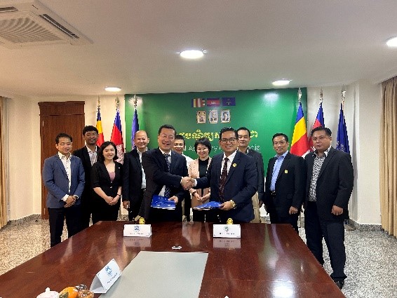 12月11日,学校代表团一行访问柬埔寨金边皇家大学。在北京市政协副主席卢彦和党委常委、副校长刘敏华共同见证下,柬埔寨金边皇家大学人文经济学部主任倪文良(Leagn Un)、国际商务管理学院院长符尚达(Sampath Phou)与学校经济学院执行院长詹新宇、商学院执行院长何玉润共同签署了双方项目合作意向书。双方同意将于2024年在国际工商管理和国际商务管理专业启动学生交换和硕士学位项目的合作。