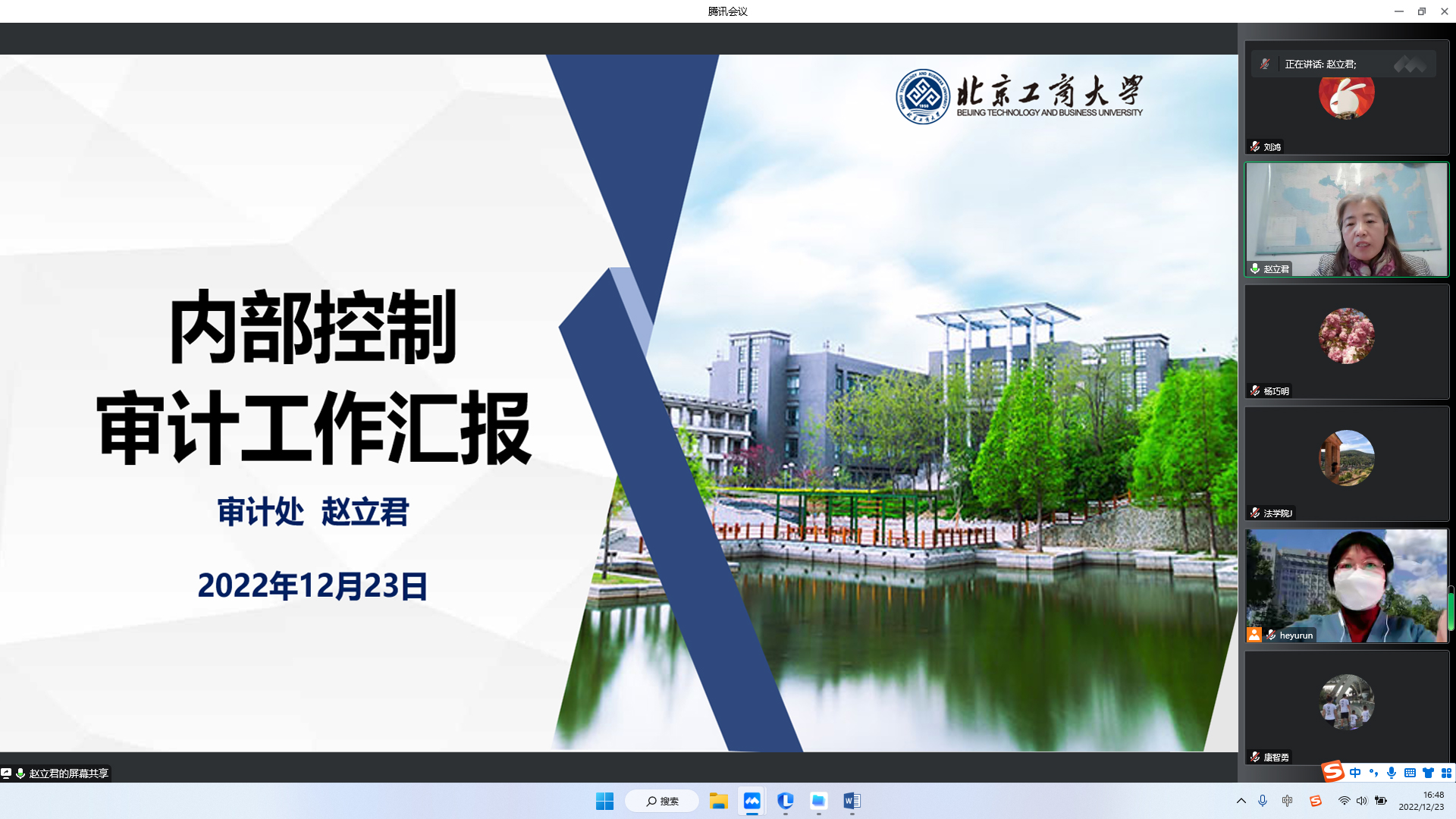 结合我校2022年内部控制建设工作中存在问题,计划财务处处长何玉润、国有资产管理处处长康智勇和审计处处长赵立君分别进行了工作汇报。何玉润围绕学校全面预算管理中预算目标设立、预算编制及项目入库、预算执行、绩效评价四个环节中存在的问题进行了重点阐述并提出了相关工作建议,介绍了学校2023年即将上线的预算一体化管理平台的功能;康智勇重点剖析了在项目申报、资产配置、资产验收、固定资产赔偿,大型仪器设备开放共享等工作中存在的问题,以及实验室的安全管理中存在的风险,提出了工作建议;赵立君重点对学校审计发现的内部控制问题和相关风险事项进行了说明,并结合市教委的要求、学校发展的需要和具体情况,提出了相关工作建议。