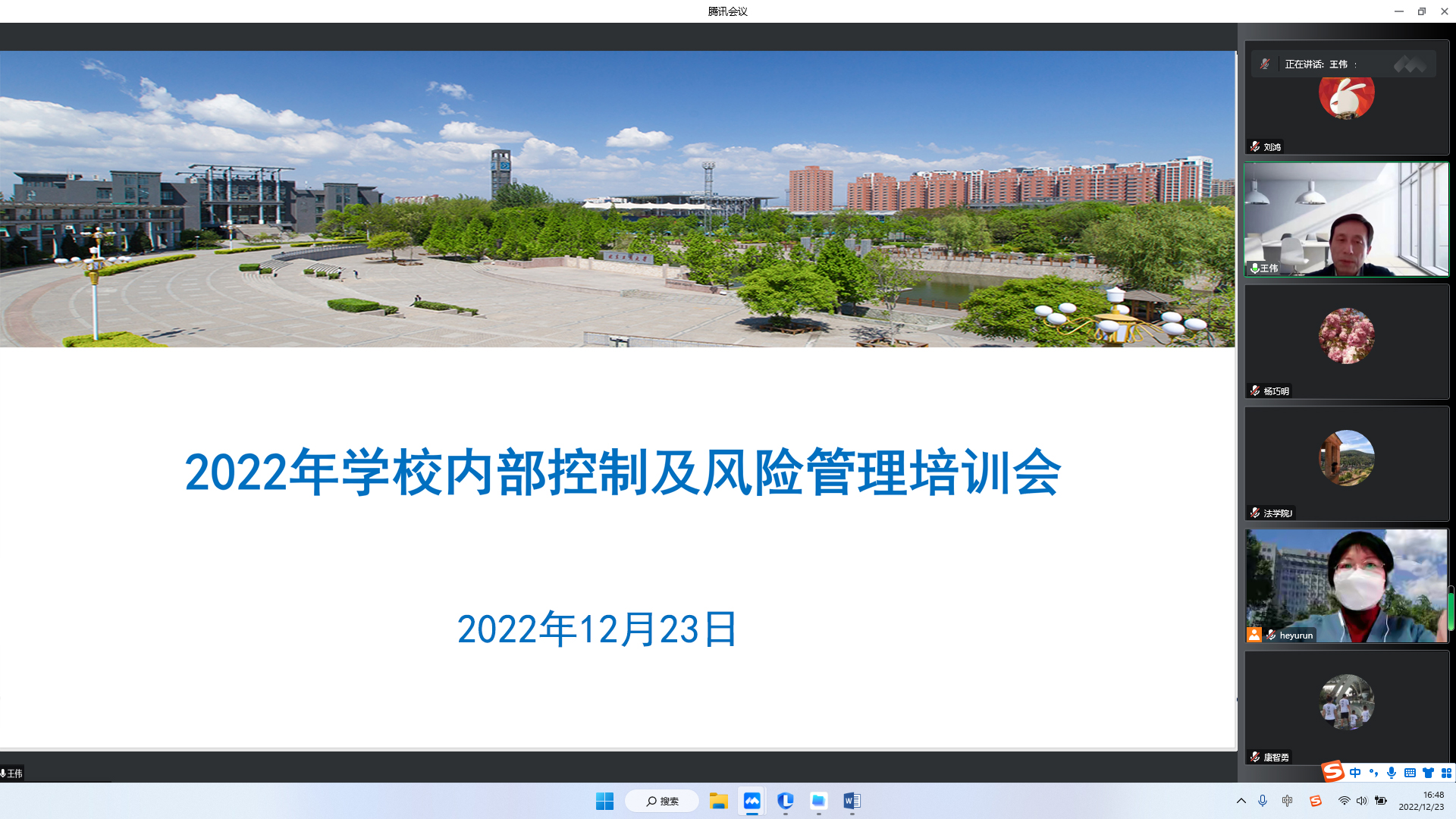 12月23日,学校举办内部控制专题培训会。党委副书记王伟,党委常委、副校长徐丹丹出席会议。培训会以线上方式进行,全体中层干部、相关科室负责人、项目负责人、各二级单位财务专员二百余人参会。会议由计划财务处处长何玉润主持。