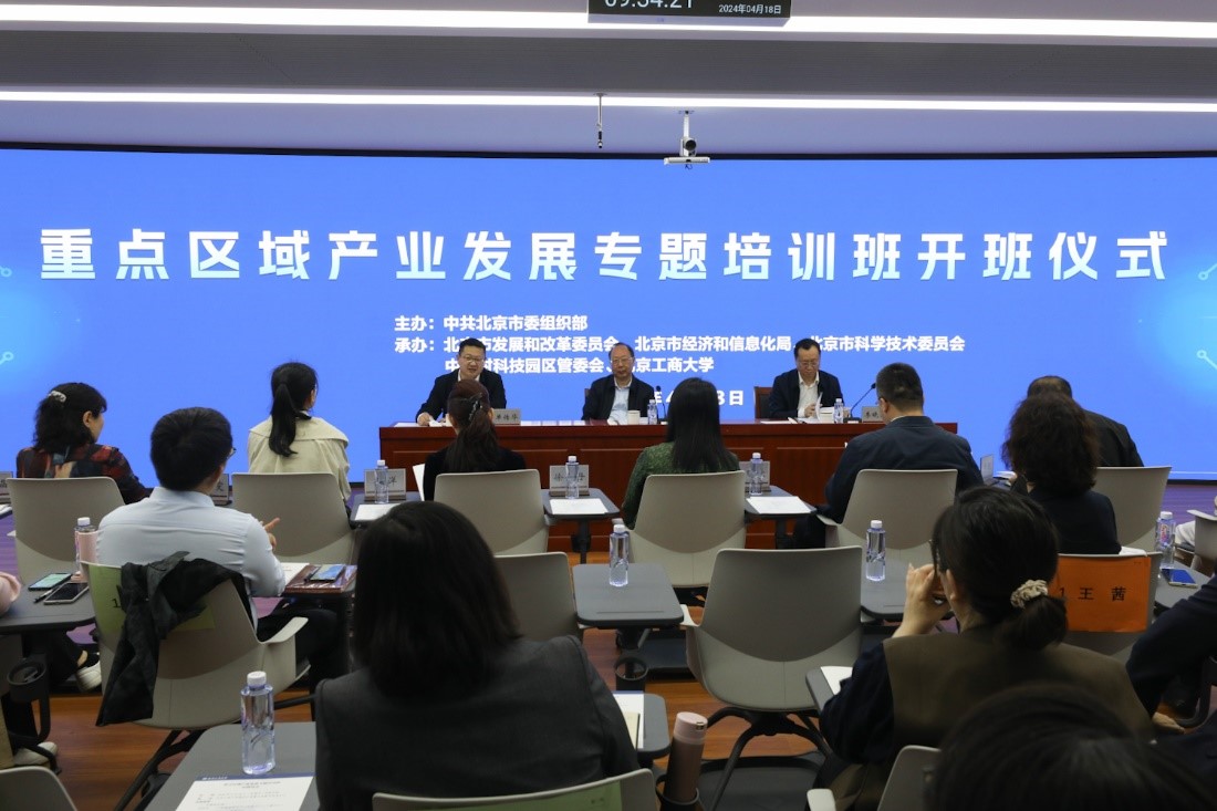 4月18日,北京市委组织部主办,市发展改革委、市经济和信息化局、市科委和我校共同承办的重点区域产业发展专题培训班开班仪式在我校阜成路校区举行,市发改委党组成员、副主任李晓涛,市委组织部干部教育处处长、电教中心(干教中心)主任、一级调研员单传华,市经济和信息化局规划处副处长李朋,市科委、中关村管委会人事处副处长唐爱雯,我校党委书记黄先开,党委副书记宋晓欣,党委常委、副校长徐丹丹出席,来自部分乡镇、街道、重点园区相关产业的参训学员共50人参加。开班仪式由单传华主持。