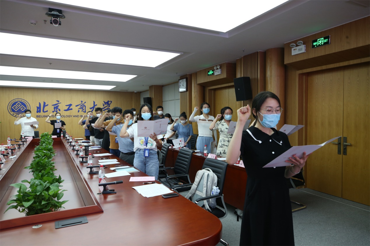 新入职教职工代表、食品与健康学院宁方建在发言中表示很荣幸加入北京工商大学这个大家庭,并对学校给予实现人生抱负机会和展示自我风采舞台表示感谢,承诺定会在今后的从教生涯中争做“四有”好老师和“四个引路人”。新入职教职工代表、经济学院胡晓天从教师职业、个人发展以及学院和学校发展的角度谈及自己的认识和体会,表示新教师只有不懈努力,扎实做好自己的主业才对得起教师职业的神圣,才能真正助力学校的高水平研究型大学建设目标。新入职教职工代表、工会刘婷婷在发言中分享了入职以来的所见所闻,并郑重承诺将以乐观的心态、豁达的心胸、充沛的精力投入到未来的工作中,以高度负责的态度为学校更加辉煌的明天而努力。同时也宣介了良乡主校区新开放的教职工之家,希望能够带给每位教职工以温暖。